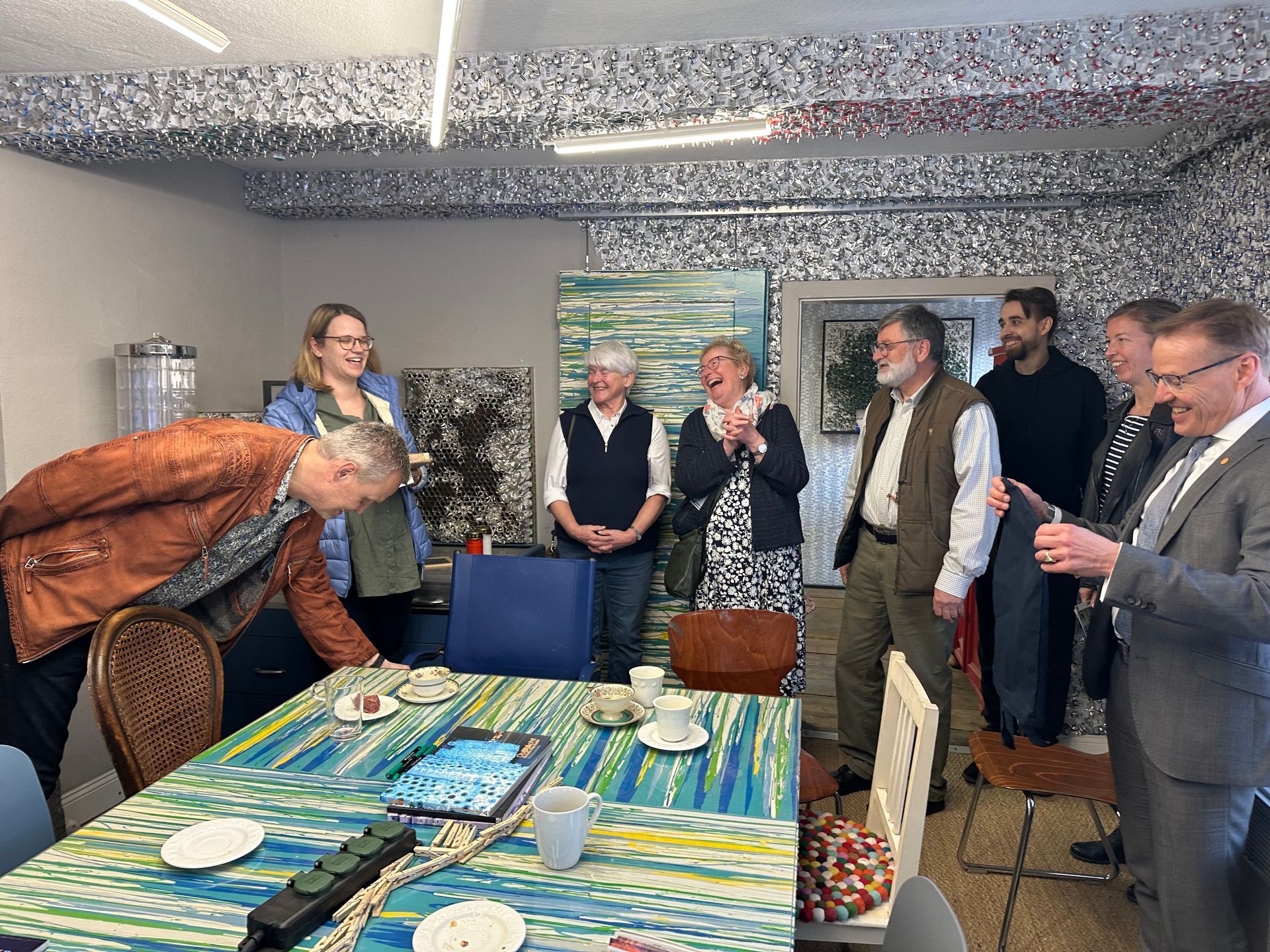 Sie kamen, sahen und staunten. „Ein sehr ambitioniertes Projekt“, lobt LAG-Vorsitzender Frank, die Verbindung von Raumentwicklung und Kunst biete spannende Perspektiven. Daniel, der Samtgemeinde-Bürgermeister zeigt sich beeindruckt, „wie viel Zeit, Engagement und Durchhaltevermögen“ hier zum Ausdruck kämen und Anja, die LEADER-Regionalmanagerin bekennt, dergleichen noch nie gesehen zu haben. Vor allem die Möglichkeit für die Besucher, „Kunstwerke interaktiv mitgestalten zu können“, hebt sie hervor.