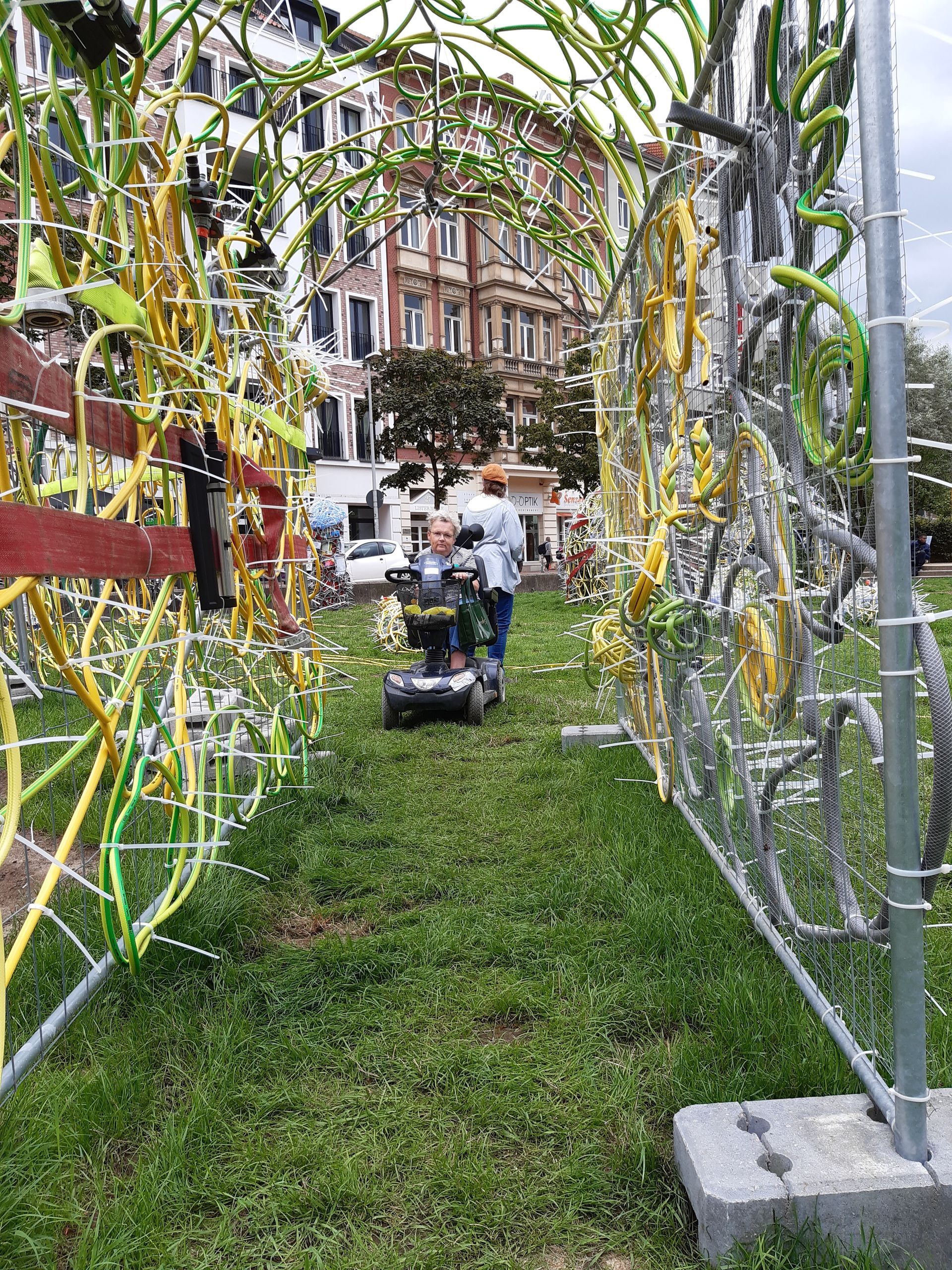 Einen „Unort“ möchte Familie Reinhardt bei „Lerbach leuchtet“ bespielen, einen Ort, der meist unbeachtet ist, der aber einlädt zum Innehalten und zum Hinhören, um die Geräusche des Wassers wahrzunehmen. In Gestalt von Mutter Angelika, Tochter Anna und Sohn Nick haben sie mit Begeisterung die Geräusche und Bewegungen des Wassers mit in Kreisen verschlungenen Wasserschläuchen eingefangen und in Linie transformiert. Wasserschläuche, die aus der Skulptur wieder ins Wasser hineinragen, als ob das Wasser aus ihnen wieder herausflösse. „Rausch“, so müsste die Installation heißen, meinte Nick. Und Angelika berichtet von den unterschiedlichen Geräuschen, die das Wasser macht, je nachdem, wo und wann man sich am Bach in Lerbach befindet. „Mal hört man ihn gar nicht, weil er unterirdisch verläuft, mal gluckst, sprudelt oder plätschert er, mal strömt er, mal rauscht er gar“, berichtet die Kunstlehrerin. Mit diesen Geräuschen sei sie aufgewachsen und darauf habe sie auch ihre Kinder immer wieder aufmerksam gemacht. Die Kindheit sei kein Zeitraum, bemerkte Jacques Brel einmal, sondern ein Ort. Mitunter auch ein Ort, der gluckst und sprudelt und rauscht. Man muss nur hinhören.