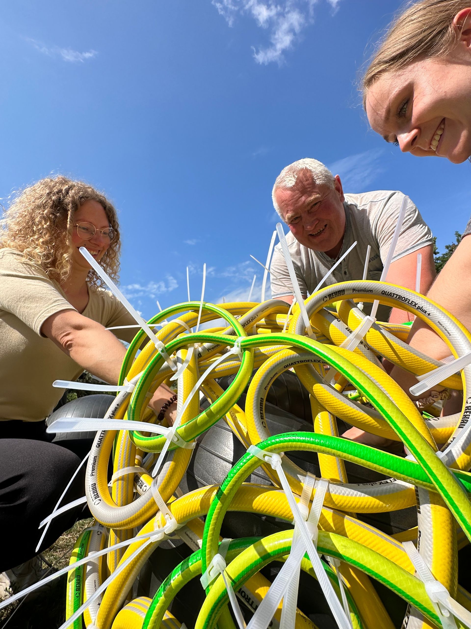 Das war vor zehn Jahren. Der Absturz. Doch inzwischen hat er wieder eine eigene Wohnung und den Wodka braucht er nicht mehr, ist seit einem Jahr trocken. Wie er das geschafft hat? Dank Ulla. Arthur, der Deutschrusse aus Omsk, ist des Lobes voll über die Sozialarbeiterin, die heute von ihren jungen Kolleginnen Julia und Bettina begleitet wird. Alle sind engagiert beim Schlauchflechten, auch Arthur ist mit sichtlicher Begeisterung dabei. „Die eigene Kreativität auszuleben ist wichtig“, sagt Ulla, „besonders in einer Zeit nach dem Alkohol“. Kunst lenke ab, im positiven Sinn.