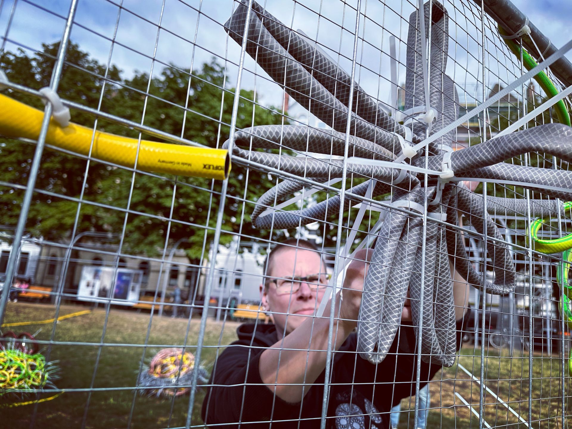 Das Leben treibt vorbei am Weißekreuzplatz, keiner weiß, wer oder was als nächstes kommt, angetrieben wird. Manchmal geschieht es einfach. Wie bei der Frau, die sich gerade umbringen wollte, wie sie sagt. Und dann verwirrt in der Schwarmkunst landet. Erzählt, mitschwärmt. Langsam zur Ruhe kommt. Es schließlich doch noch einmal versuchen will, mit diesem seltsamen Leben. Weitertreibt, aber später noch einmal Entwarnung gibt. Alles im Lot.