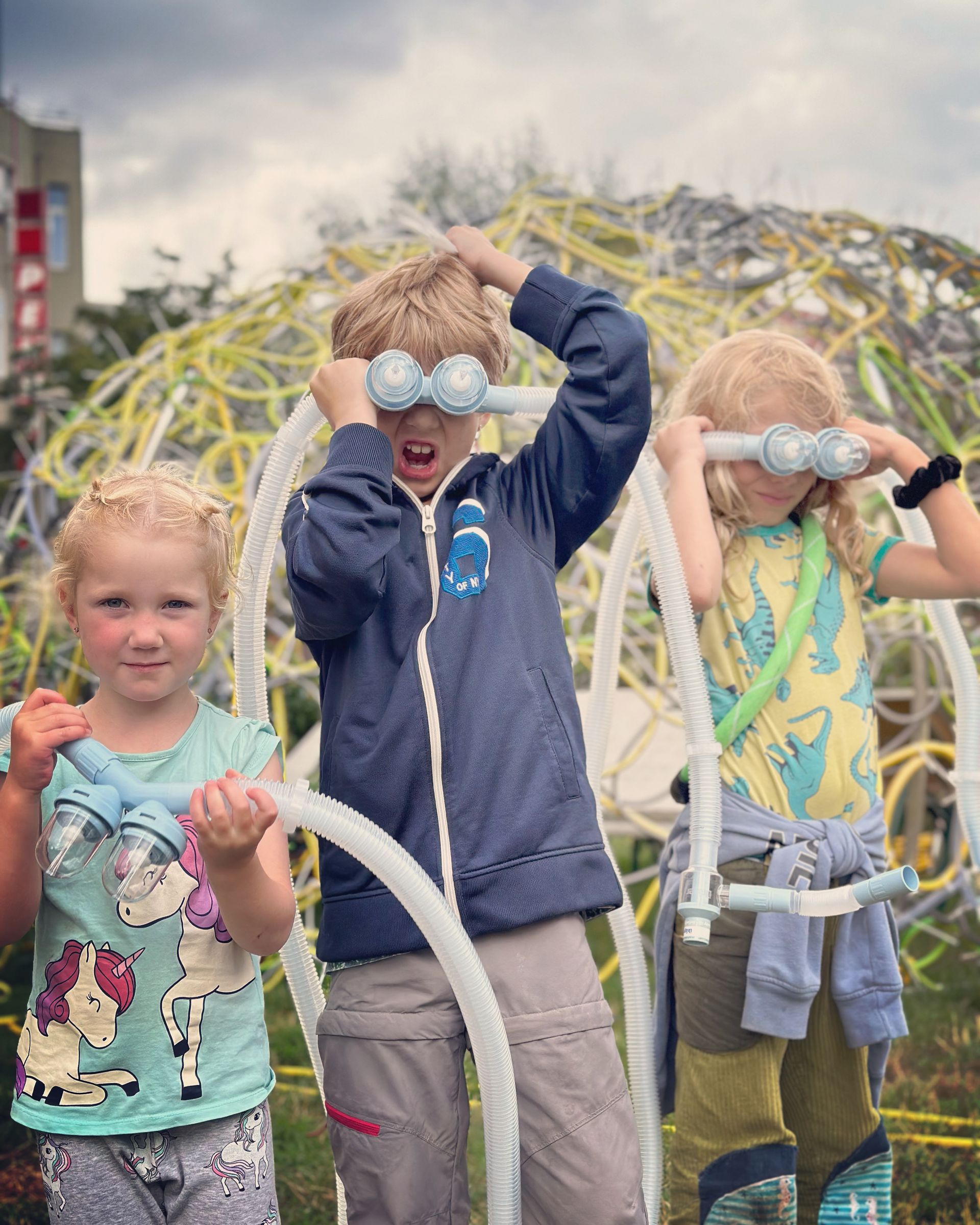 Die drei Punkte links symbolisierten einen offenen, einen öffentlichen Raum. Die vier zum Quadrat einen geschlossenen mit dir selbst in der Mitte. Wie in einem Gefängnis. In einem Gefängnis, sagt Hamsibamsi, hörst du kein Kinderlachen.
