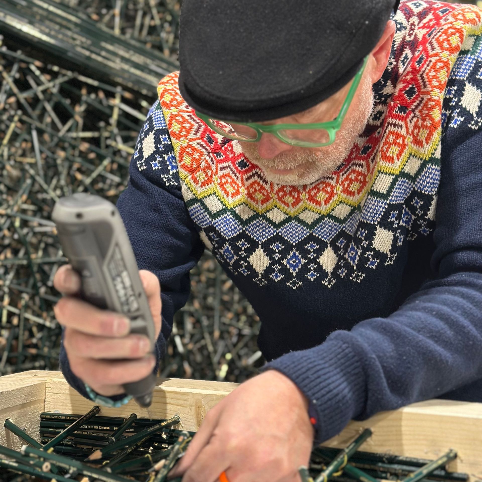 Das handwerkliche Bauen mit Bleistiften, das dem virtuellen Ausflug vorausging, hielt Franz für eine gute, wenn auch etwas schwierige Einstimmung auf das Virtuelle, weil man dann dort umso befreiter agieren konnte. Seinen raumgreifenden Konstruktionen sah man dieses Gefühl durchaus an, ein Labyrinth mit zahlreichen Wänden und Torbögen hat er um das virtuelle Bleistiftzimmer herum gebaut, dazu ein Bett mit Decke und eine Blume.
