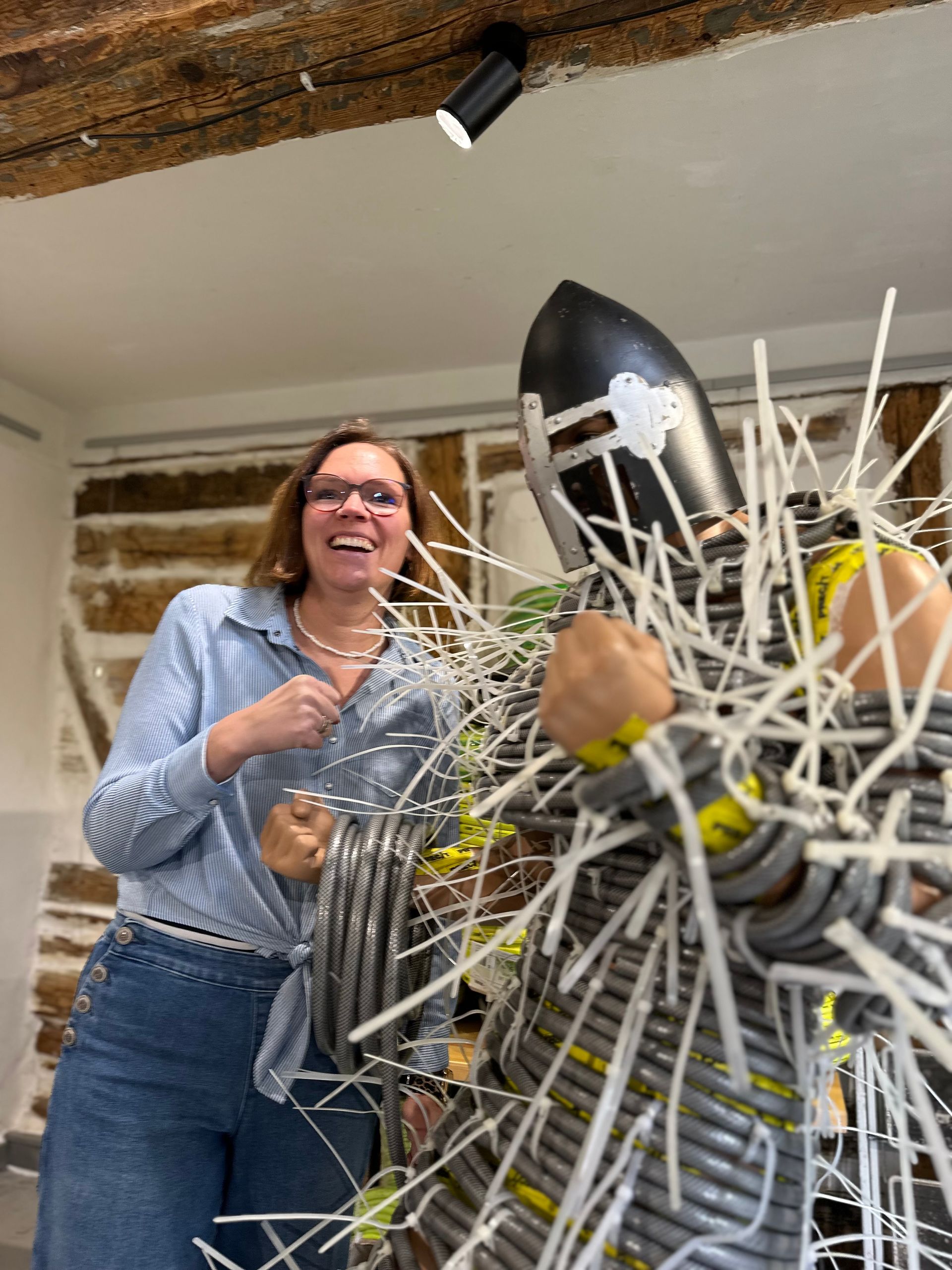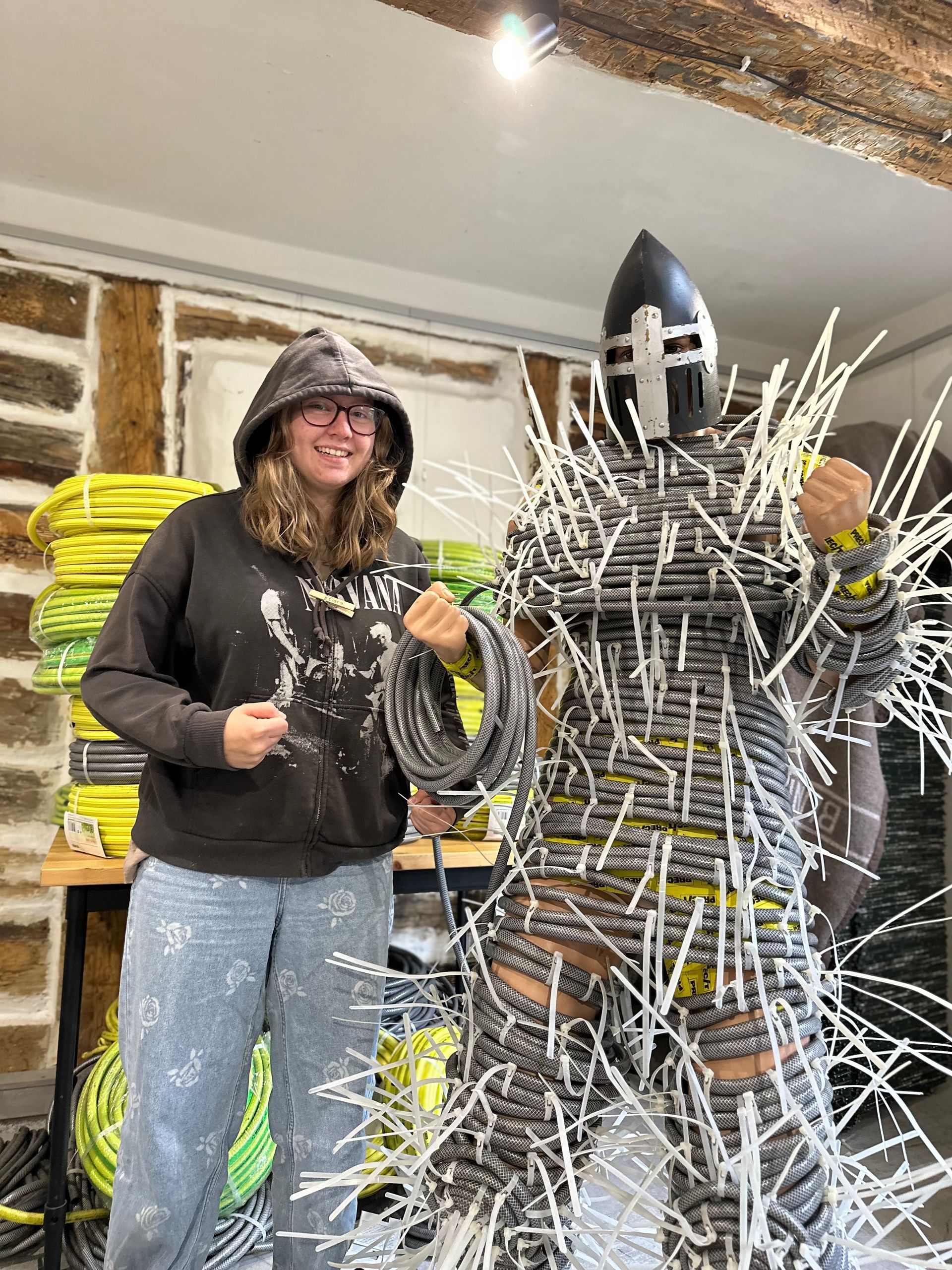 Lerbach leuchtet: entlang des namensgebenden Gewässers machen an vier Wochenenden ab der Eröffnung des Bleistifthauses am 18. Oktober, zehn illuminierte Schlauchkonstruktionen auf Sehenswürdigkeiten und Eigenheiten des Ortes aufmerksam. Mehrere Lerbacher Vereine, Initiativen und Einzelpersonen haben sich für die Workshops angemeldet, bei denen die kunstvollen Objekte gefertigt werden und der Jugendraum Lerbach gehört zu den ersten Mitwirkenden. Für ihre Skulptur haben sich die jungen Leute etwas besonderes einfallen lassen: einen Ritter.