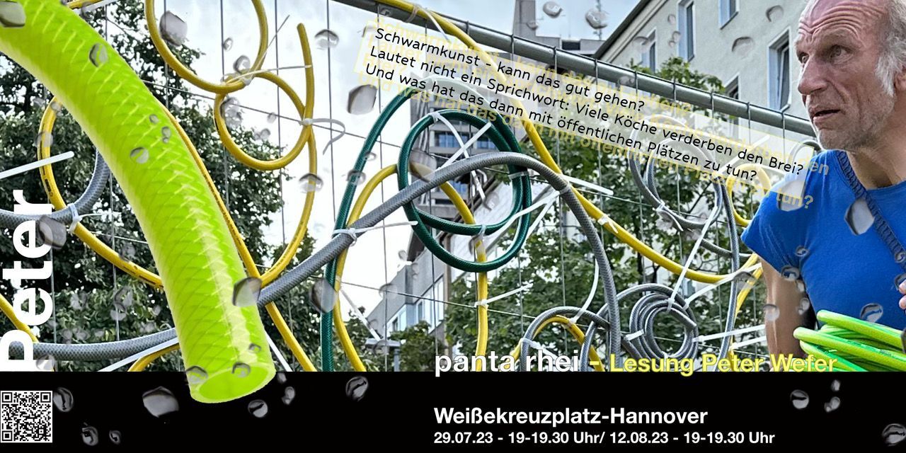 Eine Hommage an das Schwarmkunstereignis 2023 auf dem Weißekreuzplatz in Hannover und zugleich eine Ode an das vergangene Werk, an das menschliche Miteinander und das Miteinander von ungleichen Materialien und Formen. Entstanden durch die Hände vieler, und doch durch den kreativen Akt eines Einzelnen geprägt. Bei Nacht verwandelt sich das Zelt, wenn die Umgebung in die Dunkelheit zurückgetreten ist. Es wird zum Leuchtturm der Farben, ein pulsierendes Spiel aus Licht und Bewegung. Lange, geschwungene Linien, wie der Lerbach selbst, tanzen von der Kuppel zum Boden und ergießen sich über die Wiese. Das Licht im Dunkeln wird zum kreativen Impuls, zum Anstoß, die eigene Vorstellungskraft zu beflügeln. Hier trifft man nicht nur auf Freunde, sondern vielleicht auch auf Fremde, die sich im Rahmen einer Schwarmkunstaktion miteinander verbinden und so zu neuen Verbindungen und gemeinsamer Kreativität finden. Dieses Werk ist ein lebendiges, sich ständig veränderndes Experiment, das den Dialog mit dem Publikum sucht und Platz für neue Ideen und Interpretationen lässt. Es lädt ein, Normen zu hinterfragen, umzudenken und das Unbekannte zu umarmen. Ein Ort der Begegnung – sowohl mit anderen als auch mit der eigenen Fantasie.