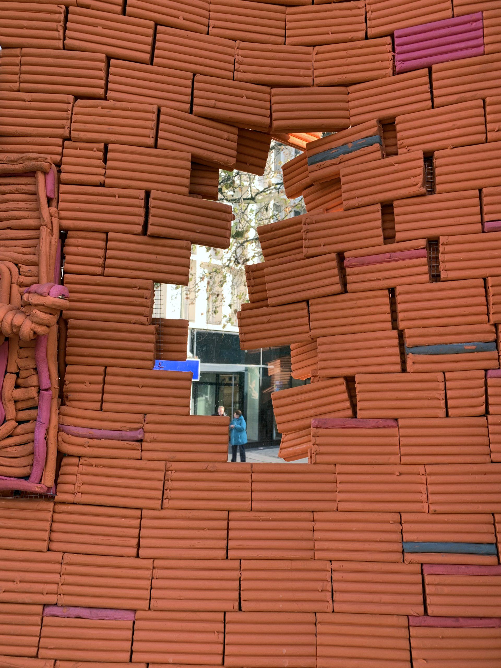 Passant:innen kö̈nnen zeigen, dass sie auf die Hilfezeichen reagieren wollen, indem sie symbolisch die Tür durchbrechen und sichtbar machen, was sich dahinter abspielt. Aus der Knete dürfen anschließend auch kleine Figuren gebastelt werden, die Szenen häuslicher Gewalt nachbilden oder von ihnen inspiriert wurden. Sie werden auf zwei seitlichen Galerien in Setzkästen in der Uhr ausgestellt.