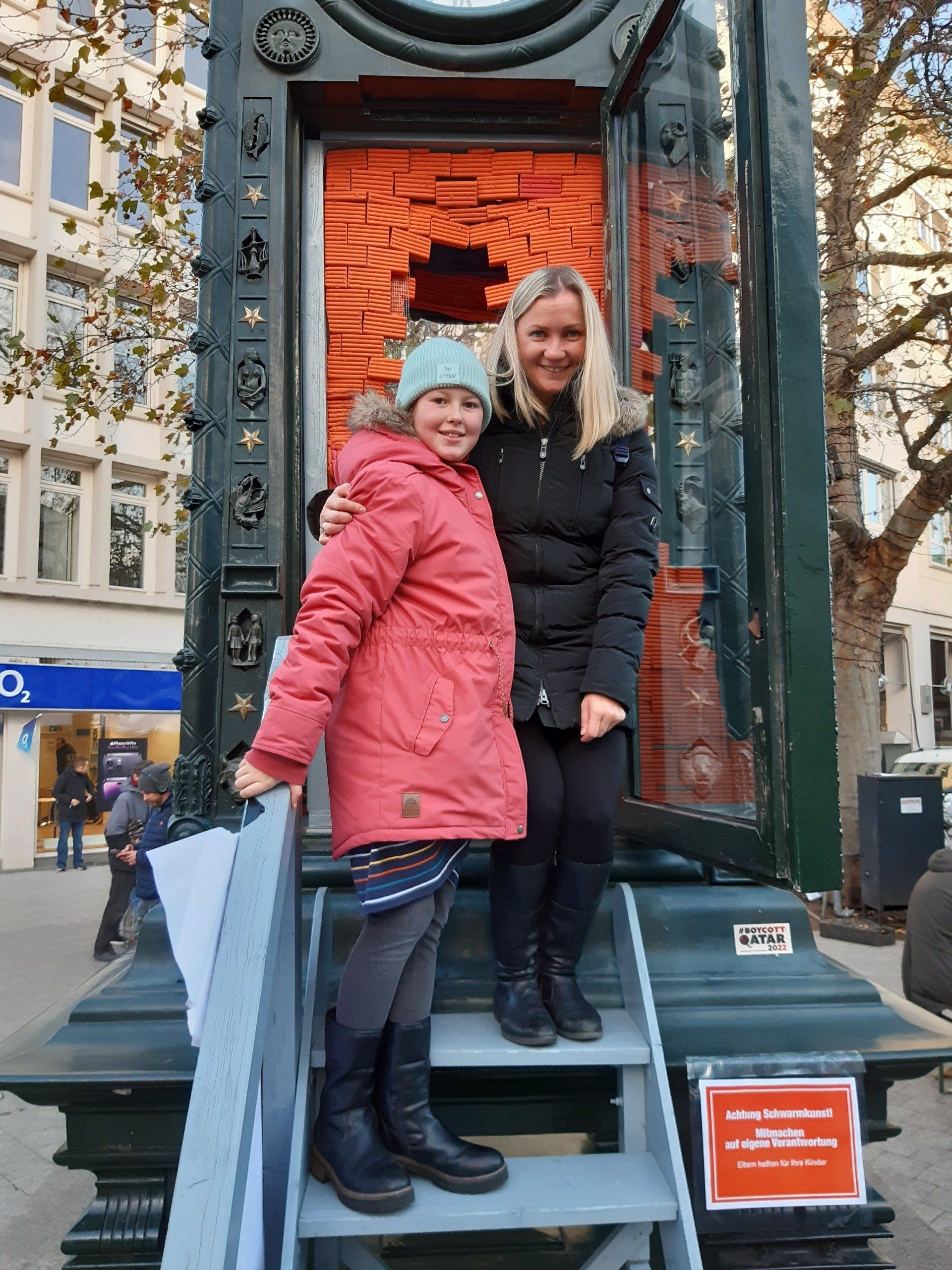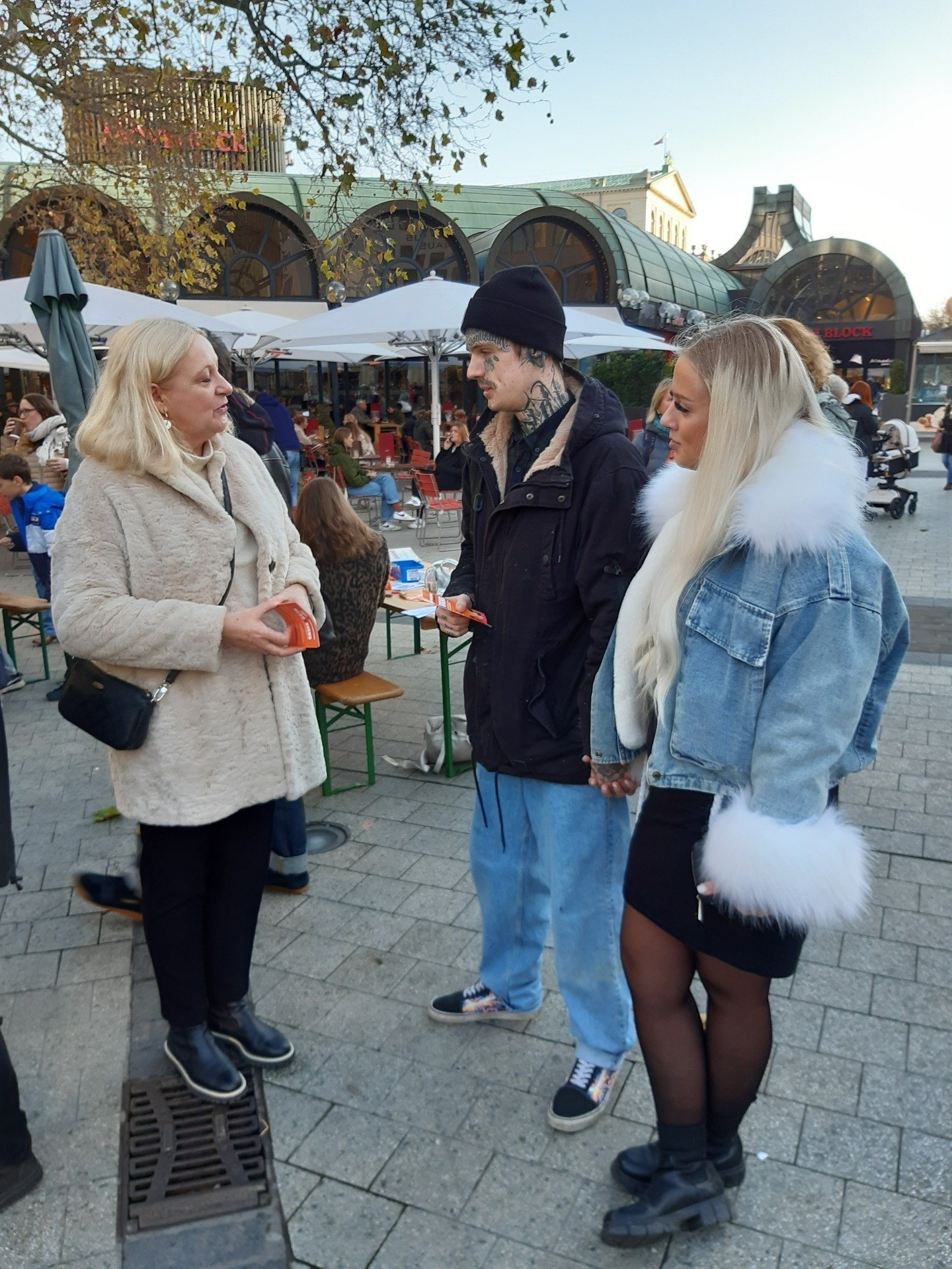 Elke, Monika und Leon hatten sich an der Kröpcke-Uhr verabredet und finden sich plötzlich in einem Kunstprojekt wieder. Sie halten die Aktion aber für eine gute Maßnahme, die unterstützt werden müsse. „Es ist so wichtig, nach draußen zu gehen und sich Hilfe zu holen“, sagt Monika, die häusliche Gewalt am eigenen Leibe erfahren hat. Acht Jahre habe sie das mitgemacht, bis sie sich einer Freundin anvertraut habe. Danach habe sie Unterstützung erhalten, sich eine Wohnung gesucht, Gesprächstherapien absolviert.