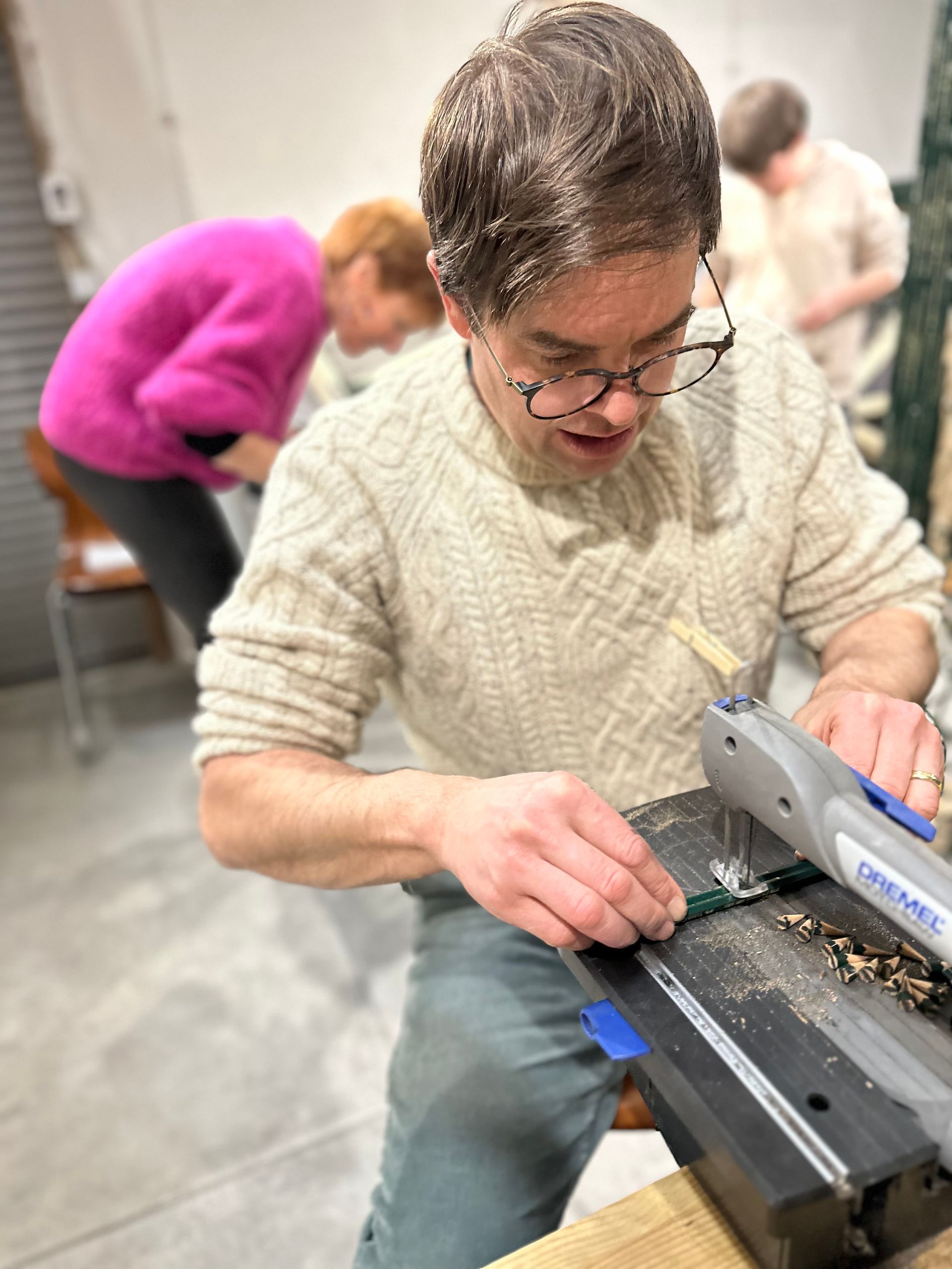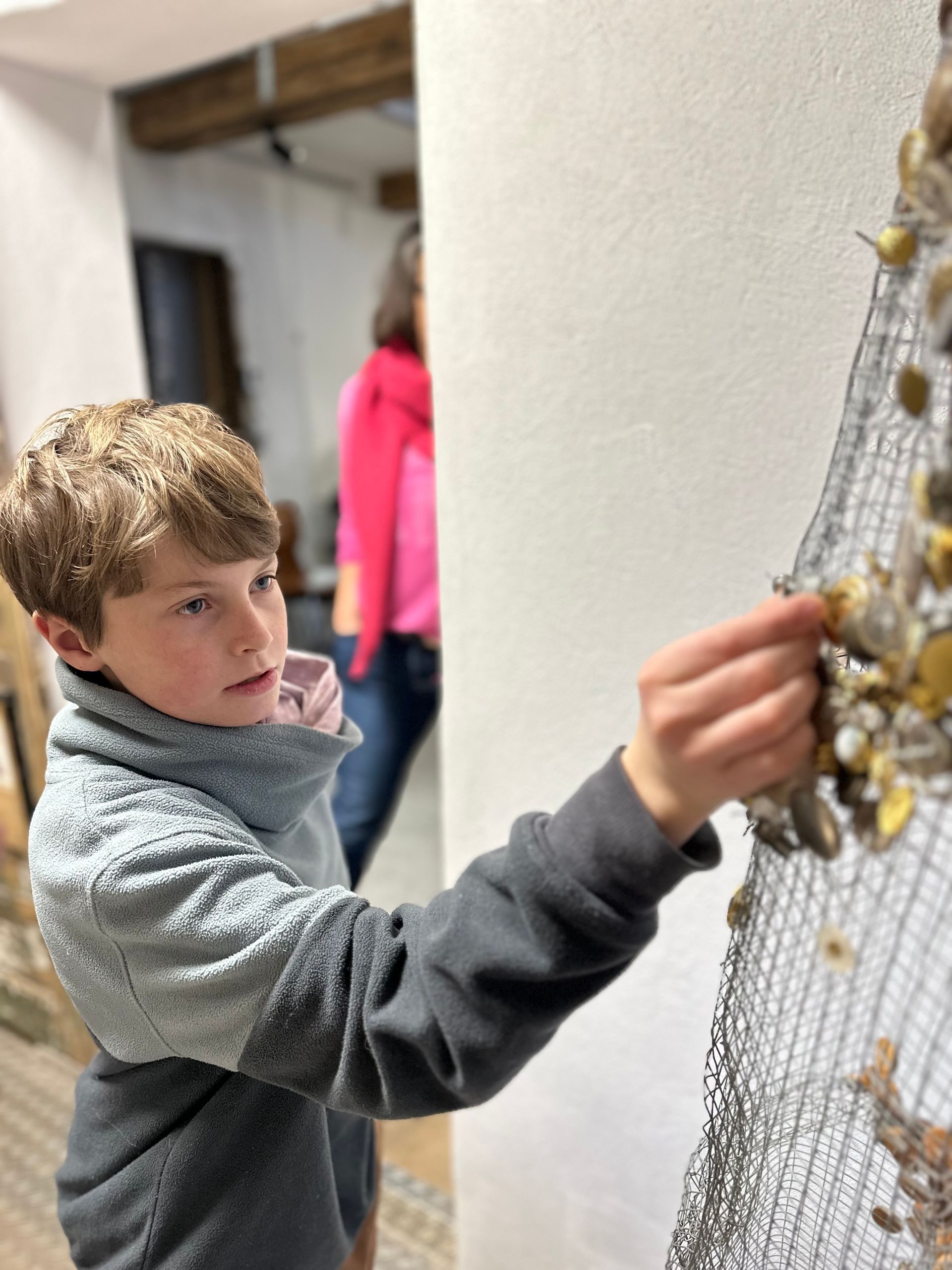 Einen „Unort“ möchte Familie Reinhardt bei „Lerbach leuchtet“ bespielen, einen Ort, der meist unbeachtet ist, der aber einlädt zum Innehalten und zum Hinhören, um die Geräusche des Wassers wahrzunehmen. In Gestalt von Mutter Angelika, Tochter Anna und Sohn Nick haben sie mit Begeisterung die Geräusche und Bewegungen des Wassers mit in Kreisen verschlungenen Wasserschläuchen eingefangen und in Linie transformiert. Wasserschläuche, die aus der Skulptur wieder ins Wasser hineinragen, als ob das Wasser aus ihnen wieder herausflösse. „Rausch“, so müsste die Installation heißen, meinte Nick. Und Angelika berichtet von den unterschiedlichen Geräuschen, die das Wasser macht, je nachdem, wo und wann man sich am Bach in Lerbach befindet. „Mal hört man ihn gar nicht, weil er unterirdisch verläuft, mal gluckst, sprudelt oder plätschert er, mal strömt er, mal rauscht er gar“, berichtet die Kunstlehrerin. Mit diesen Geräuschen sei sie aufgewachsen und darauf habe sie auch ihre Kinder immer wieder aufmerksam gemacht. Die Kindheit sei kein Zeitraum, bemerkte Jacques Brel einmal, sondern ein Ort. Mitunter auch ein Ort, der gluckst und sprudelt und rauscht. Man muss nur hinhören.