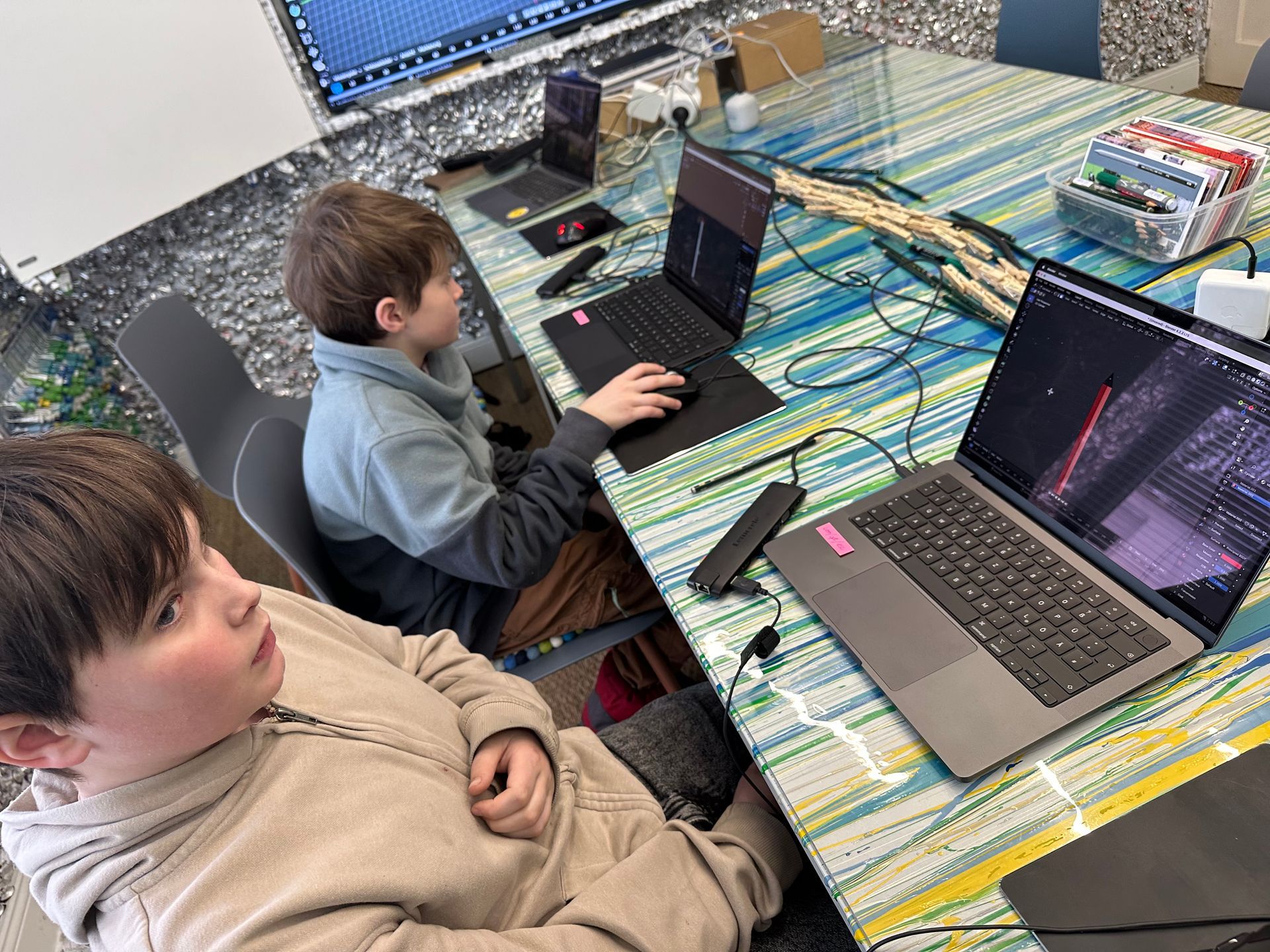 Eine Hommage an das Schwarmkunstereignis 2023 auf dem Weißekreuzplatz in Hannover und zugleich eine Ode an das vergangene Werk, an das menschliche Miteinander und das Miteinander von ungleichen Materialien und Formen. Entstanden durch die Hände vieler, und doch durch den kreativen Akt eines Einzelnen geprägt. Bei Nacht verwandelt sich das Zelt, wenn die Umgebung in die Dunkelheit zurückgetreten ist. Es wird zum Leuchtturm der Farben, ein pulsierendes Spiel aus Licht und Bewegung. Lange, geschwungene Linien, wie der Lerbach selbst, tanzen von der Kuppel zum Boden und ergießen sich über die Wiese. Das Licht im Dunkeln wird zum kreativen Impuls, zum Anstoß, die eigene Vorstellungskraft zu beflügeln. Hier trifft man nicht nur auf Freunde, sondern vielleicht auch auf Fremde, die sich im Rahmen einer Schwarmkunstaktion miteinander verbinden und so zu neuen Verbindungen und gemeinsamer Kreativität finden. Dieses Werk ist ein lebendiges, sich ständig veränderndes Experiment, das den Dialog mit dem Publikum sucht und Platz für neue Ideen und Interpretationen lässt. Es lädt ein, Normen zu hinterfragen, umzudenken und das Unbekannte zu umarmen. Ein Ort der Begegnung – sowohl mit anderen als auch mit der eigenen Fantasie.