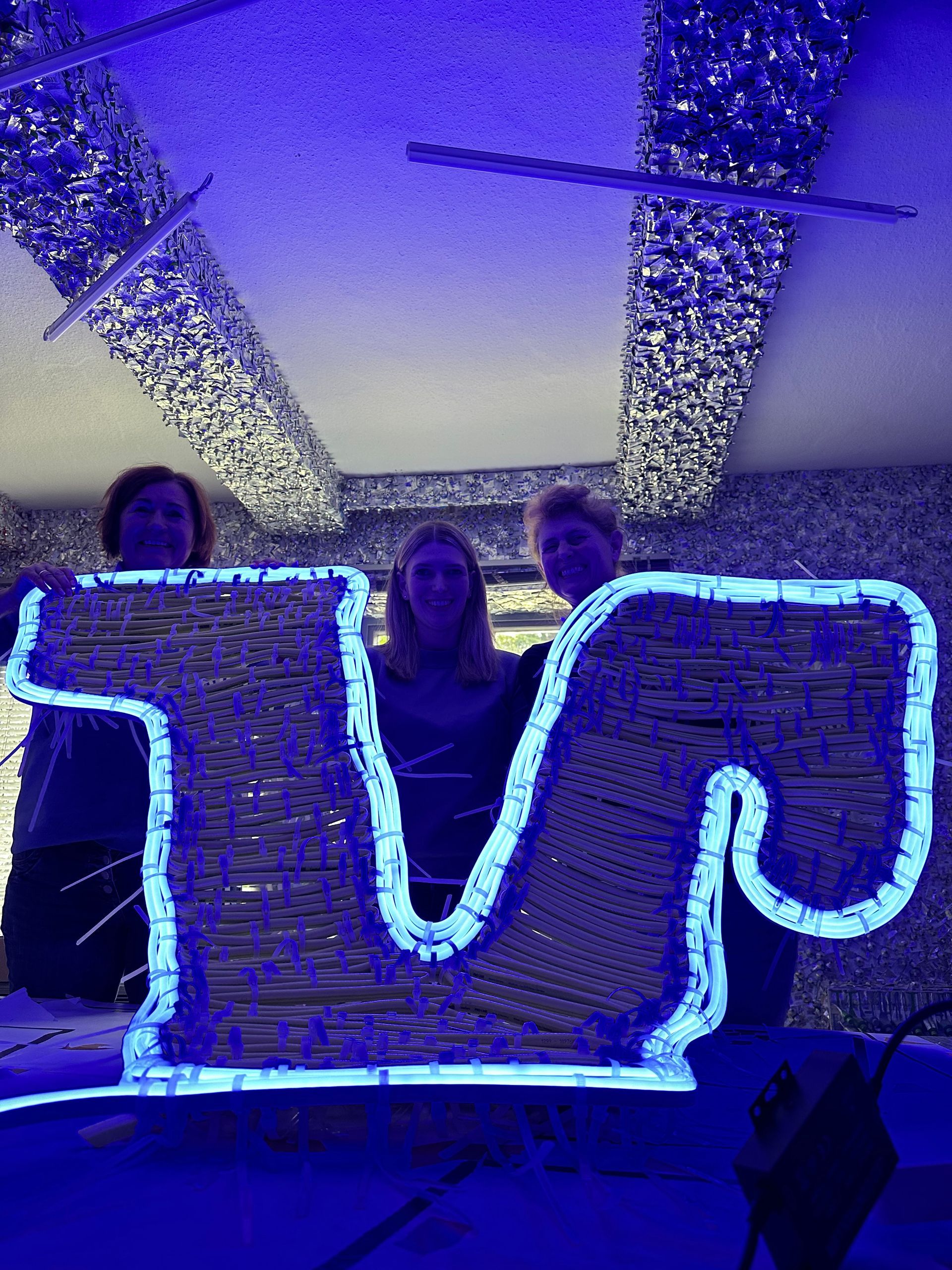 Auch die Volksbank im Harz eG hat es sich nicht nehmen lassen, eine Abordnung zu Lerbach leuchtet zu entsenden. Auf freiwilliger Basis versteht sich. Und so schufen Clarissa, Elke und Andrea mit Begeisterung ein V. wie Volksbank, wie das neue Volksbank-Jubiläums-Logo. Immerhin blickt die Harzer Genossenschaftsbank auf 200 Jahre Geschichte zurück, eine stolze Historie, die in Lerbach begann; dort wo sich heute das Fitnessstudio befindet, lag einst die Keimzelle und letzte Lerbacher Filiale der Volksbank im Harz eG. Und ebendort scheint jetzt auch das V. am Bach auf, ein V., das sich auch ein Herbert Stencil nicht leuchtender hätte wünschen können.